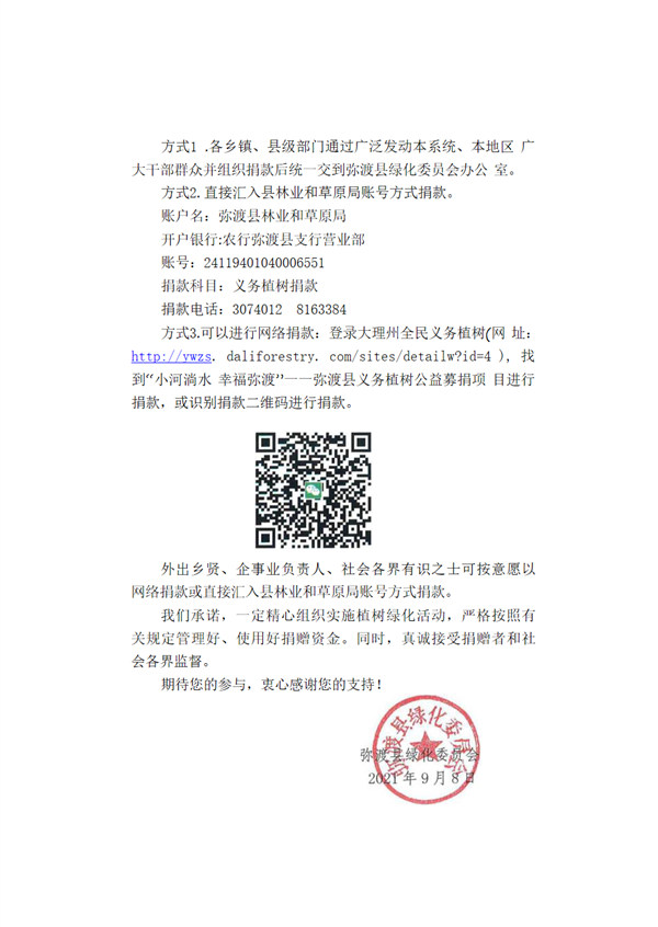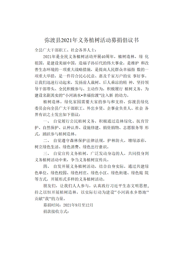 大理市彌渡縣2021年義務(wù)植樹活動募捐倡議書