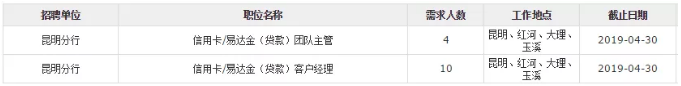 (二)信用卡/易達(dá)金(貸款)客戶經(jīng)理(工作地點(diǎn)可選擇:昆明、紅河、大理、玉溪)